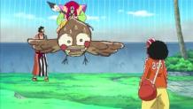 Meanwhile at Acacia, Zoro has captured his sword thief, a dwarf named Wicca, who berated herself for being caught. Because the fall sprained her ankle, she begged Zoro to take her to the flower field to deliver a report that the Donquixote family is planning to attack the Straw Hats ship. Zoro had no choice but to take her with him due to his horrible sense of direction.