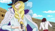 Kyros, unbowed by Diamante's vicious attacks, fights back with the anger and retribution of all of Dressrosa in order to fulfill his promise to protect Rebecca. If he is successful, only a few executives will remain, setting the stage for the Straw Hats' victory.