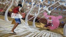 Doflamingo's underlings take advantage of the old man's blindness to steal his earnings. Luffy intervenes by telling the old man that he was deceived. Kinemon gets separated from the group.