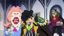 Luffy emerges safely! And Pekoms' bravery ensures he and the Straw Hats have a fighting chance! But can they withstand the full force of the Big Mom Pirates? At the last moment - a surprise explodes onto the scene!