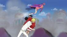 When Chiffon comes under attack, Sanji must choose between defending her or revealing himself to his enemies! Meanwhile, Luffy uses Brulee as a human shield to avoid the wrath of Big Mom!