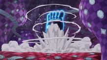 Katakuri notices his sister Flampe is sneakily providing poison needle back up in the shadows. Becoming enraged, he takes unexpected action that surprises everyone. Meanwhile, Smoothie increases her size and closes in on the Sunny.