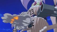 A vicious pincer attack bears down on the Straw Hats! Three fleets converge and try to squeeze the life from them! Daifuku himself take the lead! But Carrot draws on a deep power within and springs in to action under the light of the moon!