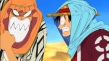 After escaping from Rain Dinners, the Straw Hats and Vivi cross the desert to Alubarne, where the final battle will take place. Crocodile, however, manages to catch Luffy, beginning the first round of their battle.
