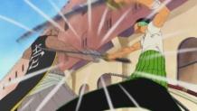 While Miss. Doublefinger's fight with Nami was challenging, Zoro is having an even more difficult time fighting Mr.1: A man who can change his entire body into steel - something that Zoro can't cut. As Zoro nears death, he must discover the secret to "the breath of all things".