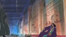 Crocodile joins Robin in the tomb, and orders her to translate the Poneglyph. Robin tells him that Pluton was not mentioned and that it was only about history, but Crocodile figures out that she was lying and stabs her in response. When Luffy recovers from the last round of fighting, he chases after Crocodile into the tomb.
