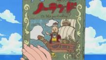 Nami's log pose begins to point to the sky, after that, a big ship falls from sky and the crew finds a map in of an island named 'Skypiea' on a 200-year-old ship. They compete with the monkey-like Masira's salvage crew while they search for more clues on how to get there.