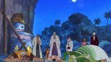 Luffy takes out Bellamy with a single punch. Meanwhile, the world government heads are concerned over Whitebeard, Shanks, and Luffy. The marines try to decide who will replace Crocodile as a Shichibukai - one of Blackbeard's crew shows up uninvited and nominates his captain.