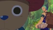 Chopper, threatened by priest Shura, blows the whistle for Gan Fall to come, but before he can arrive, Priest Shura assaults Chopper and begins destroying the Going Merry.