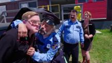 A "free weed" sign draws a bunch of stoners to the shipping container, where the boys face off with Lahey, Randy and a pair of cops.