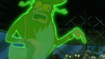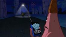 Squidward's accidental pasting by a flying shell haunts SpongeBob and Patrick.