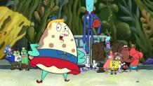 Mr. Krabs steps out of his shell and into the gym after Larry shows him up at the beach.