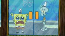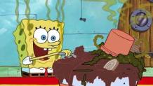 Squidward accidentally lets SpongeBob eat an exploding pie.