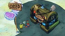 When Patrick eats his weight in Krabby Patties without paying, Mr. Krabs puts him to work in the restaurant.