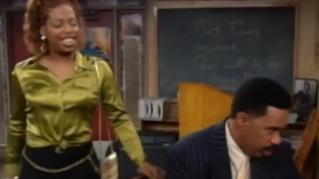 Steve has competition for Regina's affections when her college beau comes back to town to take a job as a sportscaster and to renew their relationship. - - - As the student body pummels the school mascot with paper balls, a school tradition at pep rallies, Bullethead moves in to protect it. Only when the mascot takes off the costume head does he learn Kim, a beautiful new student, has taken over the job. Romeo encourages Bullethead to ask Kim on a date. When retired football star Warrington Steele arrives at the high school, Steve and Cedric usher him to see Regina, where, to Steve's surprise, he passionately kisses her. Warrington now lives in Chicago and works as a TV news sportscaster. After Warrington exits, Steve learns he and Regina were once romantically involved and she almost married the star. Steve is insulted that Regina never told him about the relationship. Meanwhile, only after Bullethead gets himself a date with Kim does he learn that she has a weight problem. Bear