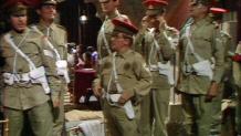 The Sergeant Major tries to train the concert party to lower the flag at sunset.