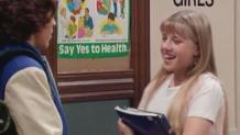 Substitute teacher Joey disciplines Michelle in front of the class.