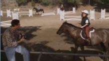 While out horseback riding, Michelle's horse runs into a tree, throwing her and causing her to hit her head.