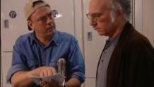 Larry's attendance at a screening results in chaos; an unlockable bathroom door causes trouble. Guest starring Julia Louis-Dreyfus, Rita Wilson and Susie Essman.