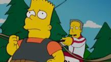 Bart and Lisa want to start getting their hair cut at the mall. They go to the mall with Homer and while getting their haircut they get into a fight, which results in them each getting really bad haircuts. Out in the mall they are spotted by fellow school students who have cameras in hand. They find Homer and go on the run; they sneak into the back entrance of a movie theater and see the film "Left Below," which is a movie about the apocalypse. The images in the movie are disturbing to Homer, who fears the worst. Marge assures him that there needs to be some ominous signs before the rapture will come. When Homer is out driving, he sees what he believes to be the signs. Homer gathers some books on the subject and he calculates that the "rapture is nigh" at 3:15 PM on May 18th, seven days from now. He starts to spread the word and tells everyone on television a passage from Revelations 6:13 that says before the rapture "the stars will fall to Earth." At the Springfield Stadium,