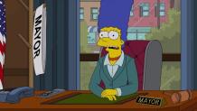 Frustrated with the local government, Marge decides to run for Mayor. To win public support, she begins making Homer the butt of her jokes.