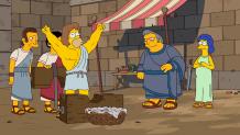 At a museum exhibit of Ancient Rome, Marge and Homer get into an argument about Homer's lack of ambition. They then imagine a Roman version of what would happen if Homer was more career-driven.