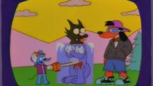 In an attempt to boost ratings, the Itchy and Scratchy Show adds a new "in-your-face" character voiced by Homer.