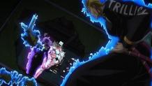 Hayato's plan to kill Kira with Stray Cat's air bullets failed. Kira realizes that Hayato has repeated the same morning numerous times, and realizes that it's becoming dangerous for Hayato to repeat the same morning any longer, and considers undoing Bites the Dust. Kira truly believed that fate was on his side, and then he showed up...
