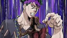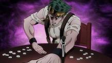 Rohan has a feeling that Josuke is cheating at cee-lo, and cuts off his own pinky. If he is unable to figure out Josuke's trick in the next round, he says he will pay him 2 million yen to have him use Crazy Diamond to fix his finger. But if Rohan does figure it out, he says he'll take Josuke's pinky instead. He even calls Tamami to act as a mediator, having him use his Stand ability so Josuke can't play fairly the next round, either.