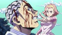 Josuke and the others finally corner Kira. Jotaro also arrives but Kira uses Bites the Dust on a paramedic who came to help and tries to blow away time gain. He tells the woman his true identity, causing Bites the Dust to activate. The final battle in Morioh is finally reaching its end!