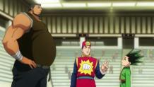 After two months, Gon and Killua are finally allowed to practice Nen again. That's when Gido, Sadaso, and Riehlvelt appear before them and tell them to fight them in the arena. Gon and Killua refuse, but Killua finds Sadaso's behavior to be very suspicious.