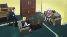 With help from Canary, who is concerned about Killua, Gon and his friends are getting closer to the mansion. However, Kikyo tells them that Killua cannot see them as he is in solitary confinement. Meanwhile, Killua has been summoned by Silva and asked if he wants to see his friend? Killua answers truthfully, and he is allowed to go see his friends...