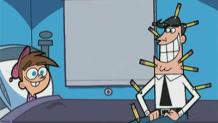 While Wanda takes a terrifed Cosmo to the doctor, she leaves Timmy with a magic photo copier that can make copies of anything. He then makes a life-size Darth Vader action figure that tries to destroy Dimmsdale.