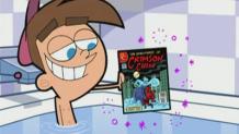 At Timmy's request, Cosmo and Wanda poof him out of his tub, so he doesn't have to take a bath. However, they forget to dress him first! Simultaneously, the comic book Timmy was going to read (rejected because it was last month's issue) slips into the water, powering the Crimson Chin's arch-enemy H2Olga!