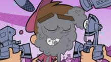 Mom and Dad are going out and they’re leaving Timmy with Grandpa Pappy, a grumpy old man who hates anything new and modern. However, if Timmy can get Pappy to at least enjoy babysitting, then Pappy may want to come over all the time -- which means no more Vicky. But every fun thing that Timmy suggests is dismissed as modern hokum. Rollerblades, rock and roll, sour candies. Nothing can make Pappy happy. Until Timmy and his Grandpa watch an old cartoon together. Pappy declares that this is what fun is all about. So Timmy wishes that the world was like a black and white cartoon from the 1930’s. Everything around them becomes wacky and zany, from the bouncing buildings and dancing cars, to the silly musical numbers. Cosmo and Wanda’s wands even spring to life and run away. While the Godparents take off after their mischief-making wands, Timmy and Pappy enjoy the good life as a couple of millionaires.