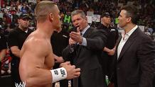 After battling each other in an incredible contest, Triple H and Shawn Michaels find themselves in opposite corners once again when WWE Champion John Cena goes one-on-one with Mr. McMahon in the main event. Mick Foley offers an apology to Lita and gives Edge a gift to commemorate their upcoming confrontation at WrestleMania and more.