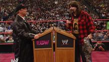 While their humiliation at the hands D-Generation X continues, following their loss to Shawn Michaels and Triple H at SummerSlam, The McMahons look to perform their own brand of degradation on another WWE Superstar by having Mick Foley join Mr. McMahon's Kiss My Ass Club. Edge quickly finds himself the victim of an unexpected twist of fate.