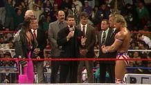 As the road to Survivor Series draws to a close, Todd Pettengill gives his report while the problems between Bret Hart and Bob Backlund continue. The King's Court plays host to another member of the Hart family who sides with his brother's nemesis. Plus, Double J, Mabel and more on this edition of Monday Night RAW.