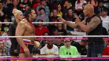 Dean Ambrose and John Cena's shared desire for revenge on Seth Rollins leads them to the main event where they are forced to coexist once again to take on Rollins, Kane & Randy Orton. As Rusev and Lana continue to rundown the American people, they are introduced to the People's Champion as The Rock makes a shocking return. Plus, Sheamus and more.