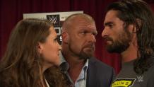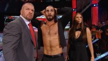 The Authority celebrates Seth Rollins' victory over John Cena with special gift to honor his legacy. However, the celebration is cut short when Rollins' present leaves him stung. After explaining why he cost Cena his chance at capturing the WWE World Heavyweight Championship, Jon Stewart has his attitude adjusted.