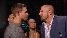 Kevin Owens battles Randy Orton and Cesaro in a Triple Threat Match to determine who will challenge Seth Rollins for the WWE World Heavyweight Championship. When the action gets too close to actor Stephen Amell, Stardust finds himself with a new enemy. Plus, Dean Ambrose battles Luke Harper, Daniel Bryan joins MizTV, and much more.