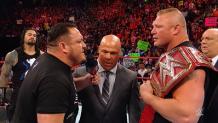 Raw General Manager Kurt Angle invites Universal Champion Brock Lesnar to the ring to confront Samoa Joe, Roman Reigns, and Braun Strowman. Nia Jax and Sasha Banks battle for a shot at challenging Alexa Bliss for the RAW Women's Championship. Plus, Akira Tozawa challenges Neville for the Cruiserweight Championship and more.