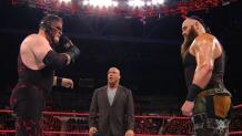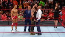 When his battle with Bray Wyatt turns into a brawl, Roman Reigns finds himself teaming up with Seth Rollins to take on Samoa Joe and The Eater of Worlds in the main event. Elias battles Intercontinental Champion Dean Ambrose. Plus, Alexa Bliss faces off against Mickie James and more.