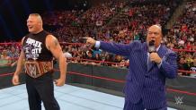 With Brock Lesnar lurking on in the shadows, Seth Rollins looks to avenge his Shield brethren by taking to the ring to face Drew McIntyre in the main event. Batista joins the broadcast via satellite to share his side of the story. Travis Browne accompanies Ronda Rousey when she defends her RAW Women's Title against Dana Brooke.