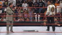 Mr. McMahon shares his true feelings about his marriage to CEO Linda McMahon. But when Commissioner Mick Foley and Stephanie McMahon-Helmsley take offense to his actions, The Chairman finds himself in the main event against WWE Champion Kurt Angle. Plus, The Rock teams with The Undertaker to take on Edge & Christian and much more.
