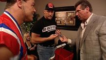 Mr. McMahon orders "Stone Cold" Steve Austin and Triple H to team up to compete against The Rock and WWE Champion Kurt Angle in the main event. Plus, Trish Stratus' romantic relationship causes issues for Stephanie McMahon-Helmsley, Edge & Christian battle Kaientai, and more.