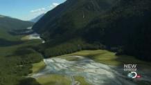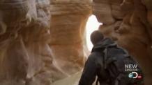 Over 100 people drown each year in New Zealand, and Bear must cross a raging river on a tree trunk to head toward civilization. On his journey to safety he runs out of water, is forced to climb up active volcanic ranges and scale down a waterfall.
