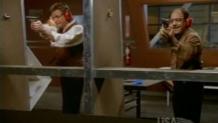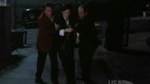 Handcuffed Skip Osaka jumps out the back of the moving 'Cuda. Nash and Joe give chase. Skip runs up a fire escape onto a power line. The line breaks, and Skip falls through a window. Nash and Joe place him in the trunk of the 'Cuda, and bring him to the SIU. A surprised Nash, Joe and Harvey discover the SIU barge is being towed away by a tugboat. The Head of the MCD, Reuben Banks, drives up and informs Nash the SIU has been temporarily shut down.