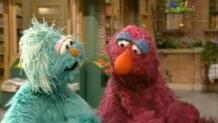 Zoe needs a rock-sitter to read, sing, and play with Rocco while she is away in swimming class. Telly agrees to take care of Rocco in the meantime. Since Rocco likes rock stories, Telly, with Elmo’s help, first tells her the story of “Goldirock and the Three Bears.” Since Rocco also likes rock music, Telly, Alan, and Bob sing, “Rock Around the Rock” to her.