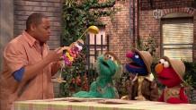 Cookie Monster gets upset when reporter Mario Lopez dubs him the Veggie Monster after seeing him eat carrots.
